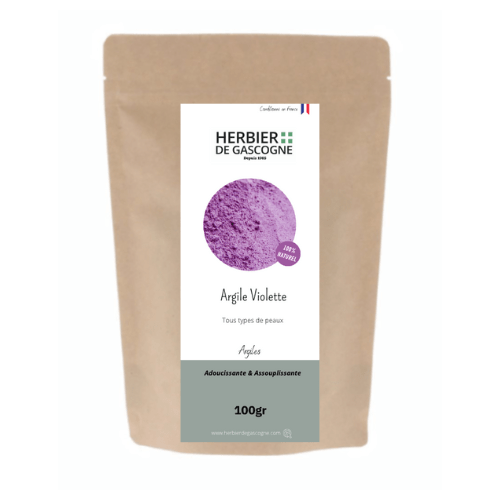 L'Argile Violette est idéale pour tous types de peaux. Elle adoucit et assouplit les peaux sèches, purifie et assainit les peaux grasses. Elle défatigue et revitalise les peaux fatiguées.