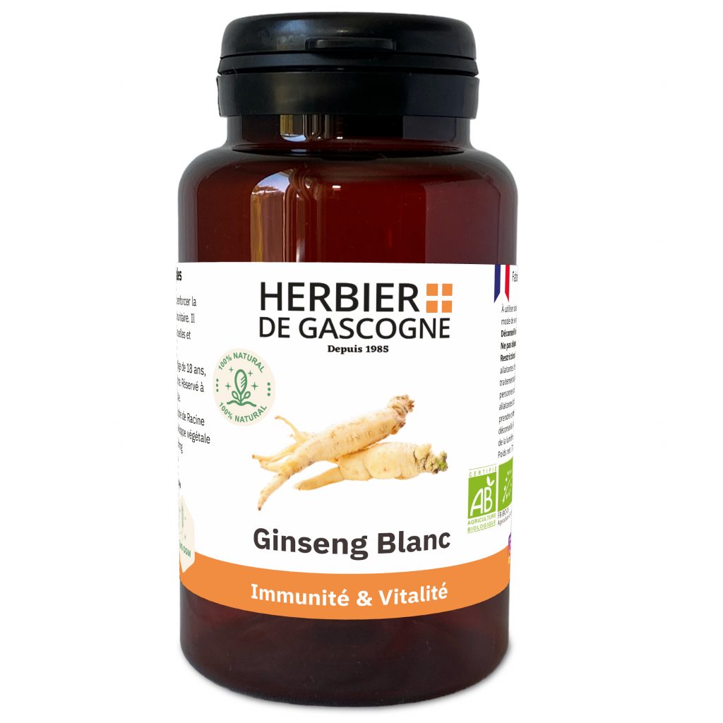 Le Ginseng Blanc est connu pour renforcer la vitalité et stimuler le système immunitaire. Il favorise les performances intellectuelles et physiques.
