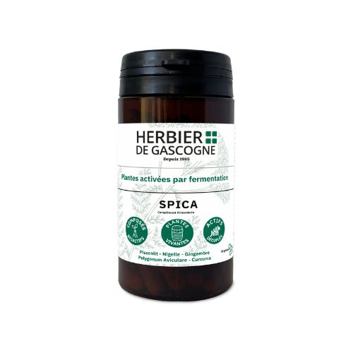 Le Complexe Spica est un soutien général de l’organisme. Il aide à se débarrasser des toxines et autres impuretés. Le Pissenlit, le Polygonum et le Curcuma soutiennent les différentes fonctions de drainage et d’élimination des toxines de l’organisme : (perturbateurs environnementaux et/ou chimiques). La Nigelle et le Gingembre contribuent à la vitalité et l’énergie.
