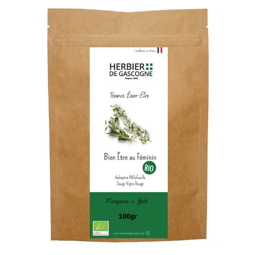 La Tisane Bien-Être Féminin est un mélange de plantes sélectionnées par nos experts en Phytothérapie pour favoriser le confort Féminin durant le cycle menstruel.
