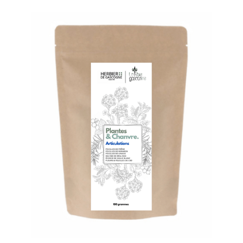 Le Frêne maintient la flexibilité des articulations. Le Romarin agit comme un décontractant musculaire, ce qui lui permet de soigner les contractures douloureuses. Il exerce également une action antalgique qui contribue à faire disparaître rapidement les douleurs musculaires et articulaires. Les feuilles de Cassis sont riches en flavonoïdes aux vertus antioxydantes. Elles sont antirhumatismales, diurétiques, légèrement fluidifiantes, anti-hypertension et anti-inflammatoires. Elles sont souvent employées pour traiter les douleurs articulaires. La Racine de Réglisse contient des composés, notamment la glycyrrhizine, qui ont des propriétés anti-inflammatoires. Ces composés peuvent être utiles dans le soulagement de l'inflammation associée à des affections telles que l’arthrite et les douleurs articulaires. L’Écorce de Saule Blanc favorise la santé des articulations et contribue au bien-être des muscles et des articulations. Le Chanvre est recommandé pour apaiser la douleur grâce à son action sédatif léger. En particulier, il est conseillé pour les douleurs articulaires, ce qui en fait un complément naturel pour accompagner certains soins de bien-être. Outre le CBD, le chanvre contient également des acides gras essentiels, des vitamines tel que des oméga 3 et des minéraux. Ces composants peuvent contribuer à un apport nutritionnel intéressant lorsqu’ils sont intégrés dans une alimentation variée